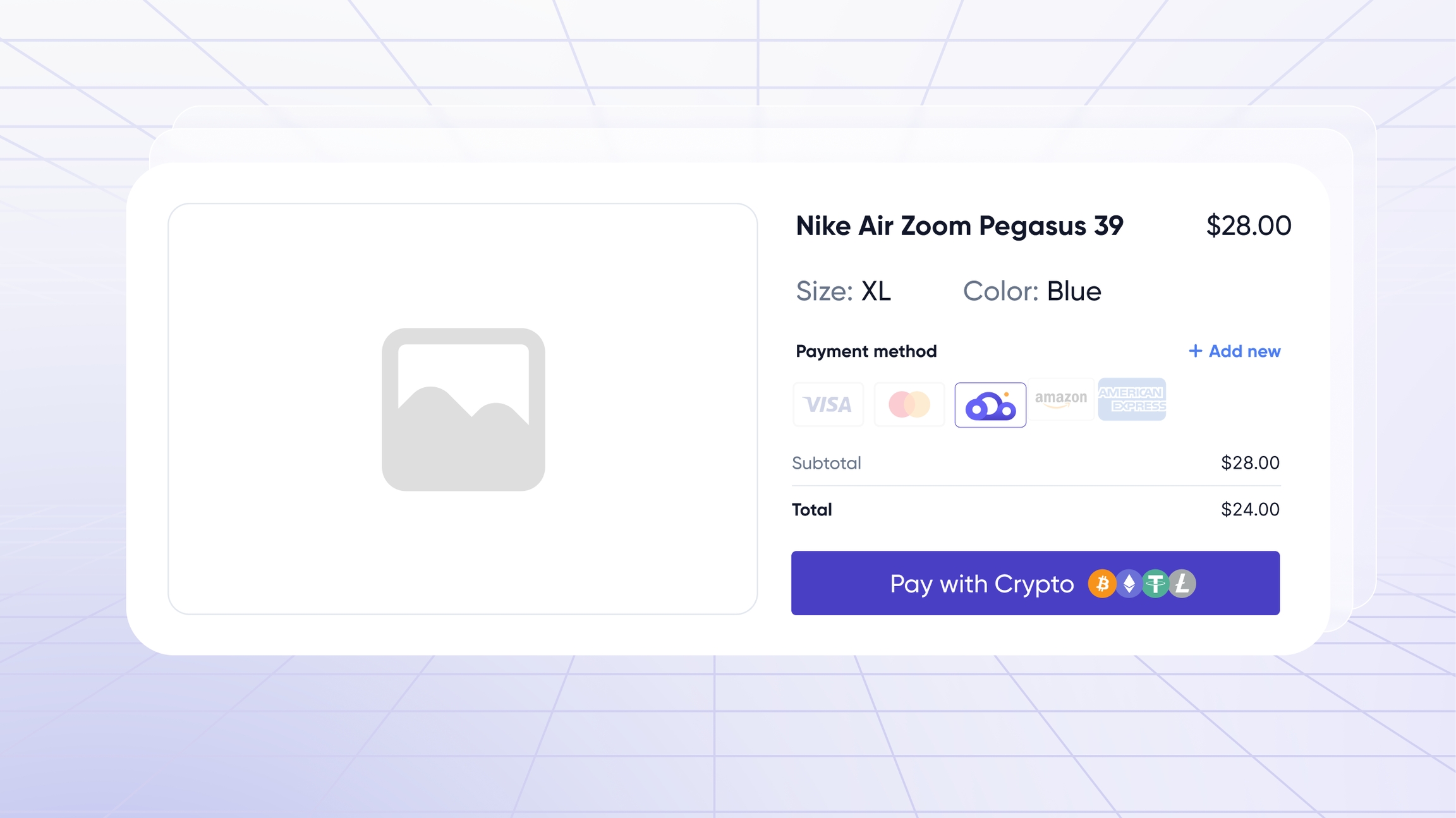 At this point, the CryptoCloud branded button can be placed in the payment methods selection area, clearly showing the user the option to pay via CryptoCloud along with other available options.